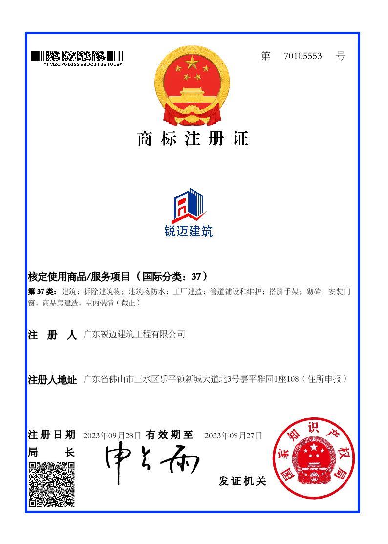 今后,广东锐迈建筑全体员工将通过不懈努力来维护公司和品牌的信誉,不断提高品牌的认可度和美誉度,为社会提供更加优质的服务!