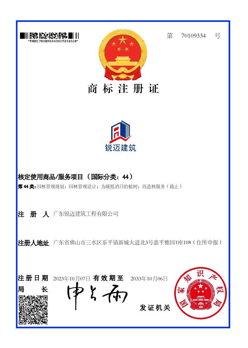 热烈祝贺我司成功获得“锐迈建筑”商标的国家商标局核准注册证书